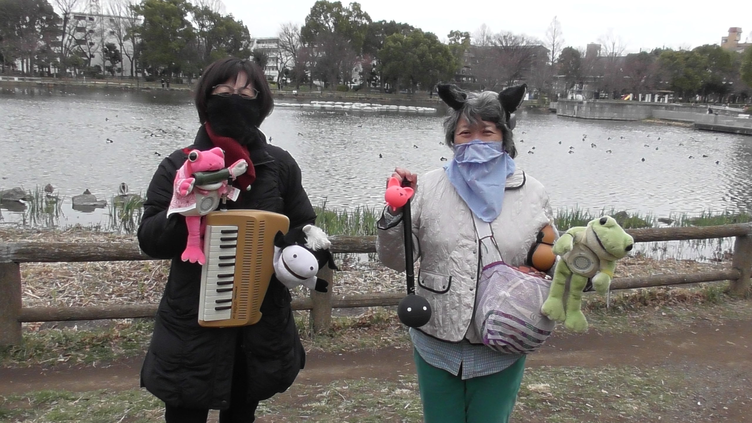 鍵盤ハーモニカ、キーボード、木の葉やビニール等で作った発明笛、飛沫を飛ばさずに歌えるパペット、踊るロボットなど、発明楽器のコラボ演奏。