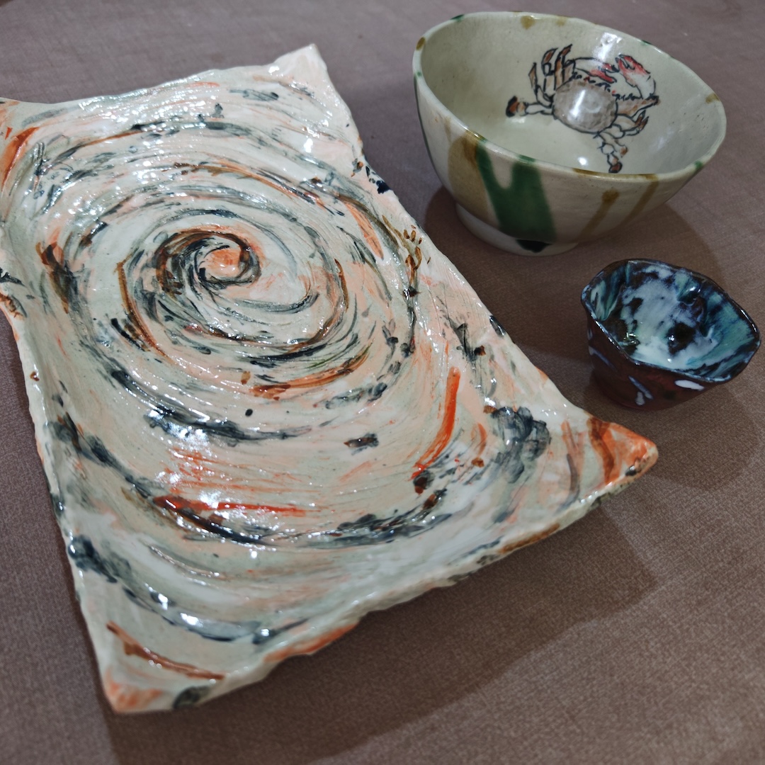 小さな箸置きからお皿まで、いろんな陶芸品を手作り。