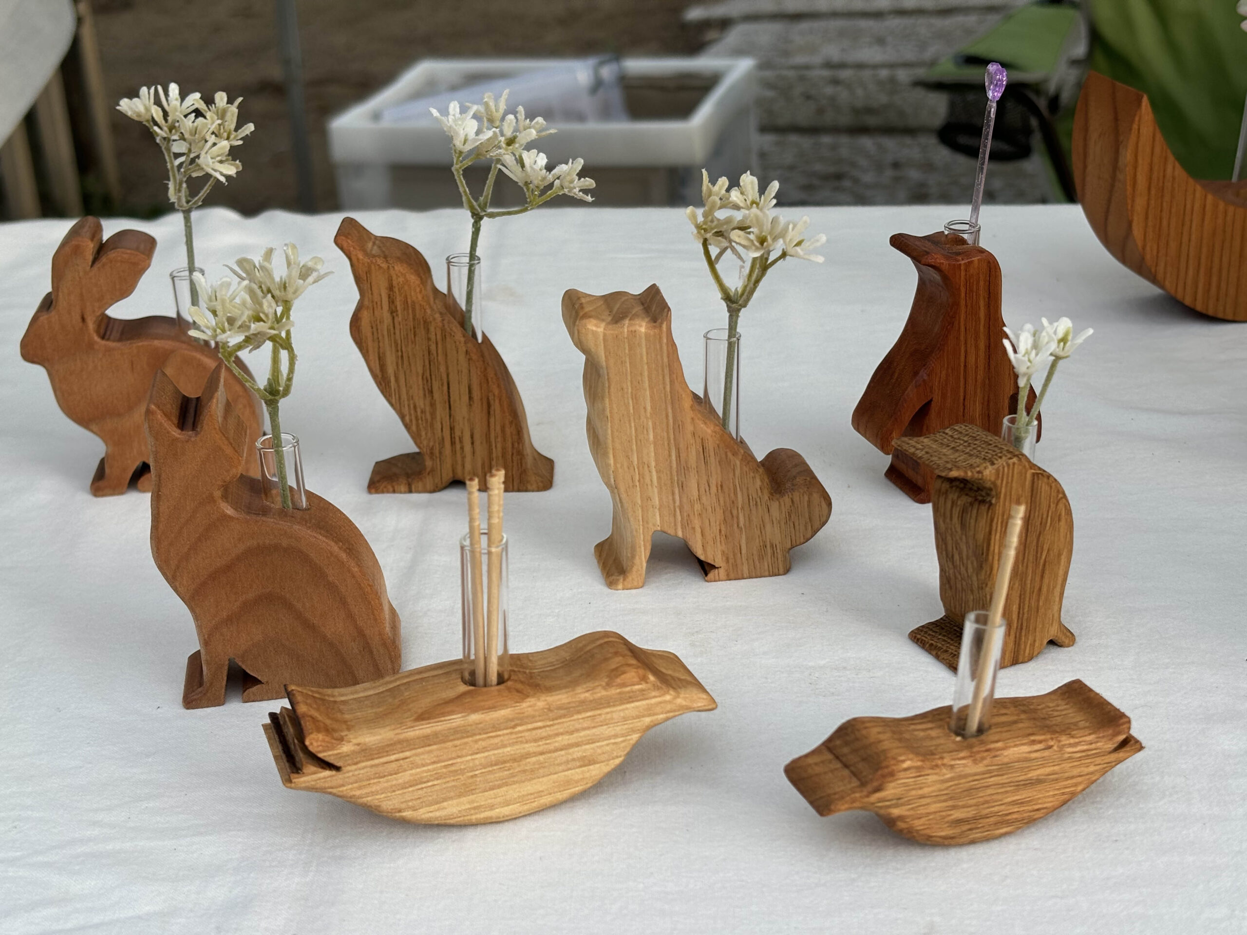 動物シルエットの黒板・鍋敷き(カッティングボード)・一輪挿し・ブローチなど、