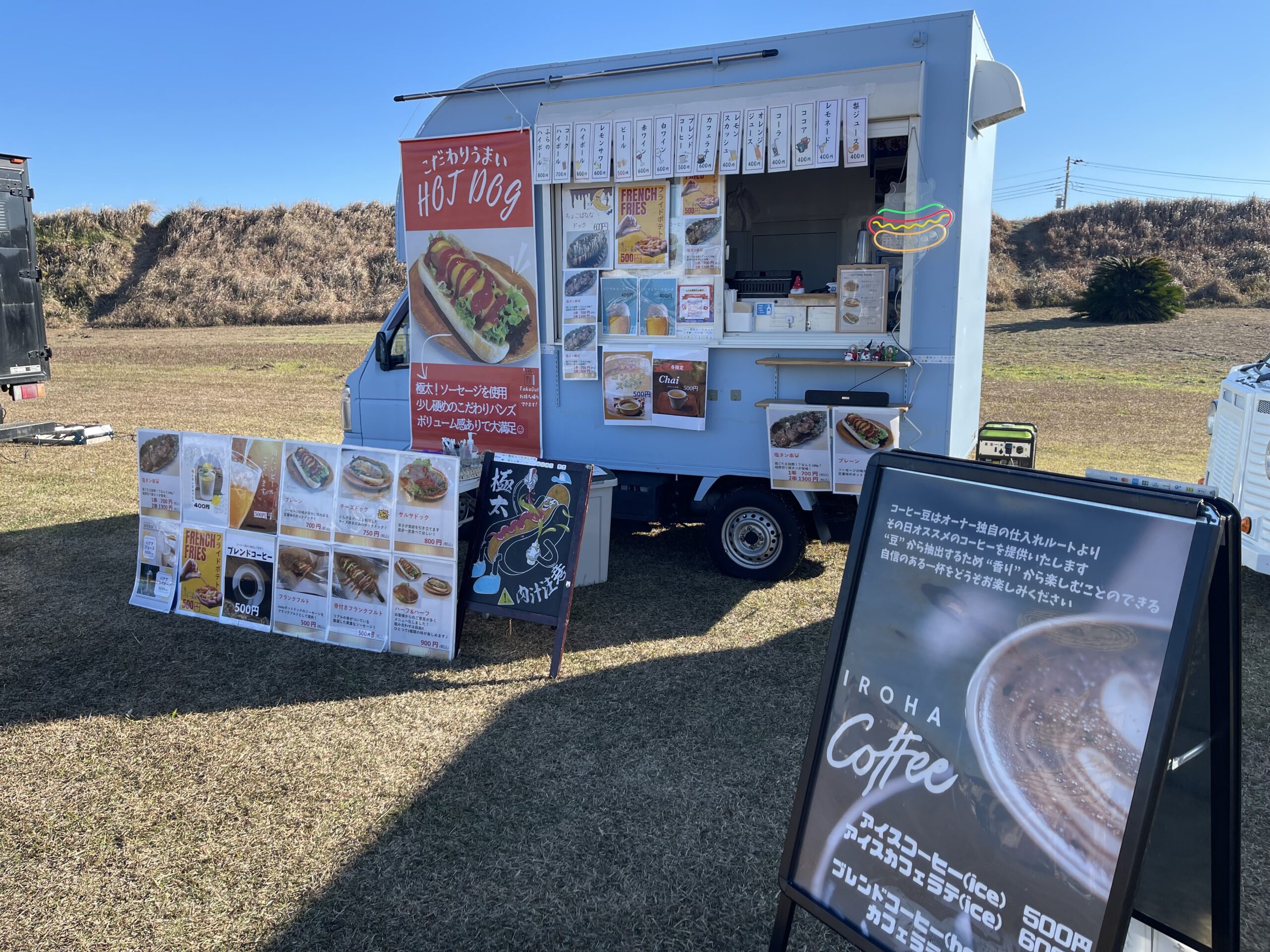 ホットドッグ、フランクフルト、骨付きフランクフルト、タン串、フライドポテト、焼きとうもろこし、ミニチュロス、ちょこばななドック、ブレンドコーヒー、カフェラテ、バナナジュース、バナナフラペチーノ、ふらのハイボール、コークハイボール、ハイボール、レモンサワー、ビール、赤、白ワイン等の販売