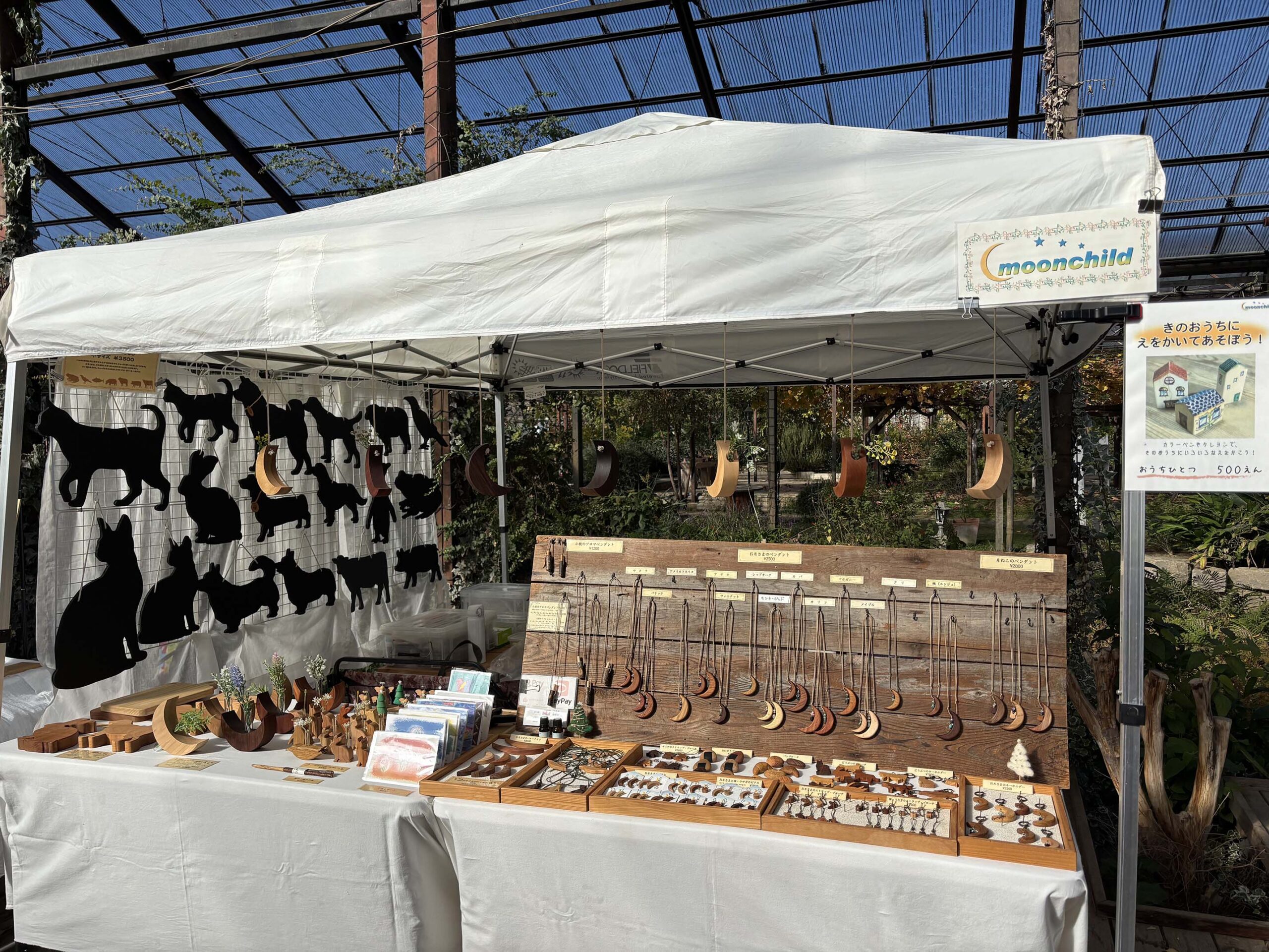 樹種の色や木目を生かして作る木の三日月のアクセサリーをメインに、