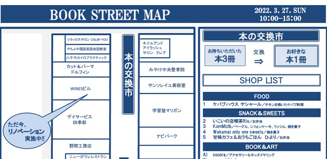 今回のBOOK STREETは、通常の春&秋の本祭りとは異なる特別版です。 当日は、八千代台自治会主催の「子供夏祭り」が近隣の八千代台小学校(第1会場)で開催されます。 BOOK STREET(北本通...