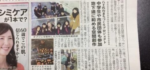 八千代よみうり紙掲載『中学生や市民団体も参加 地下道に和める空間創作』 2017年12月26日 by yachiyodai.machi · Published 2017年12月26日 · Last modified 2018年7月26日