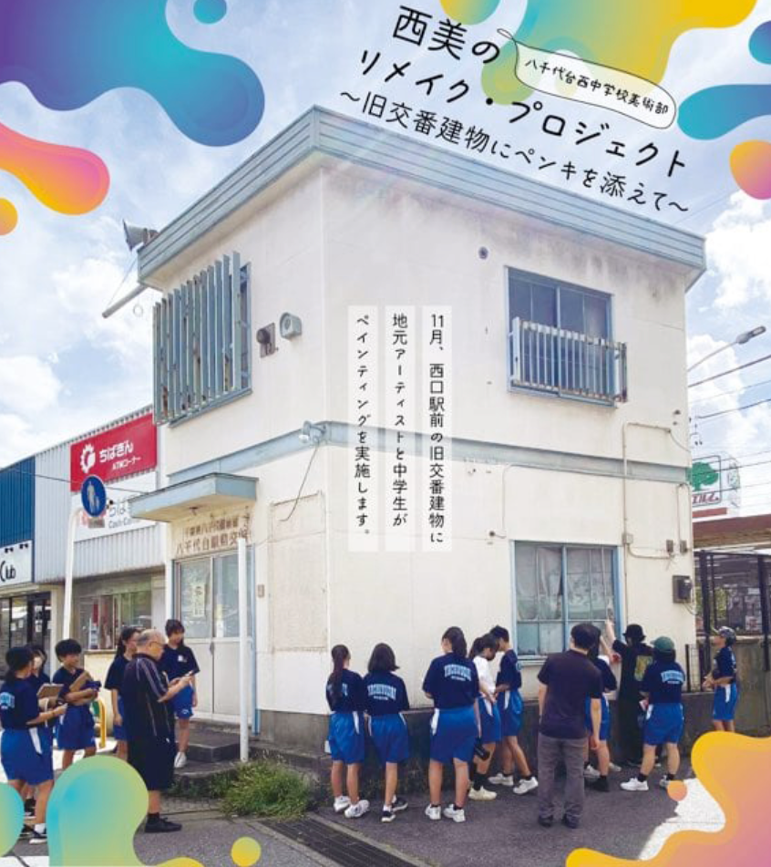 旧交番建物アートプロジェクト:地元アーティストと西中美術部がペイントを実施しました