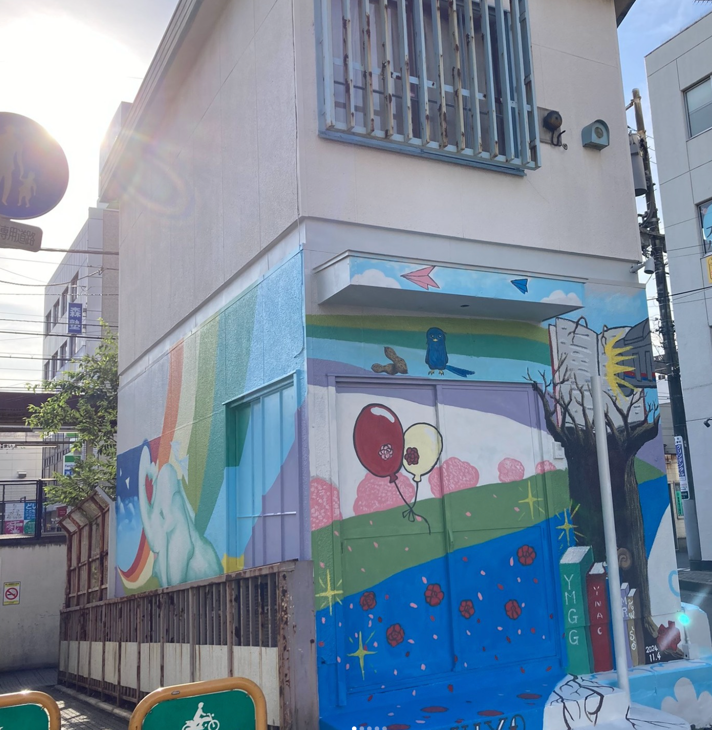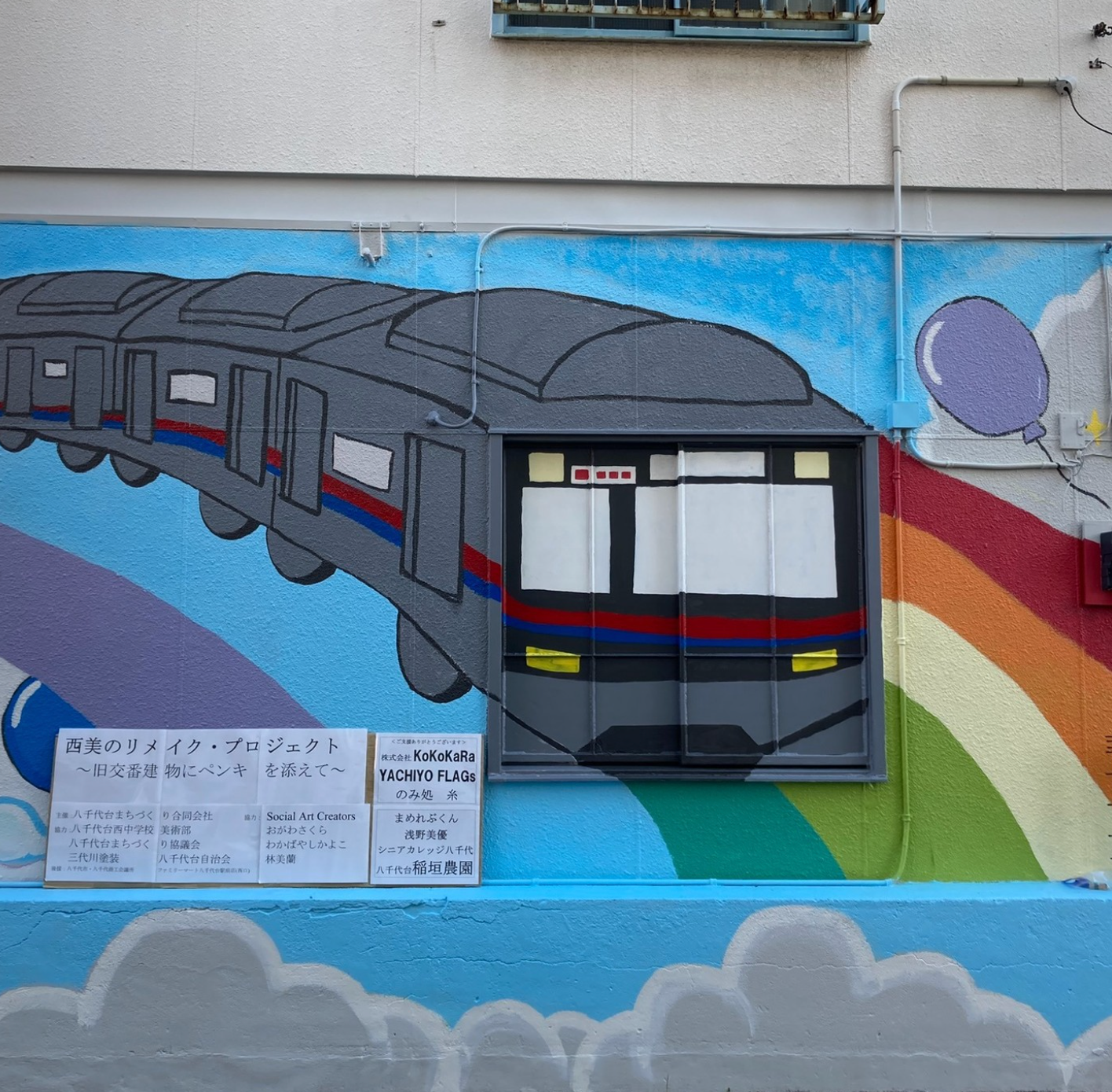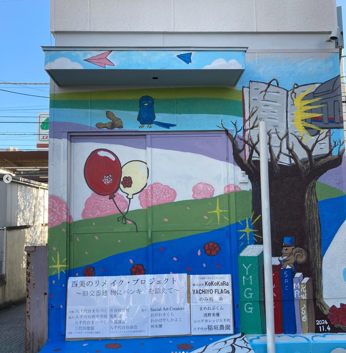 24年11月に八千代台西口駅前の旧交番建物に地元アーティストと八千代台西中美術部がペインティングを実施しました。