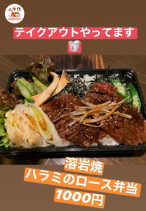 ・ハラミのロース弁当1000円・厚切り牛タン弁当1350円・アウトデラックス弁当2800円(商品画像や詳細はInstagram@yakinikubar_outを参照ください)